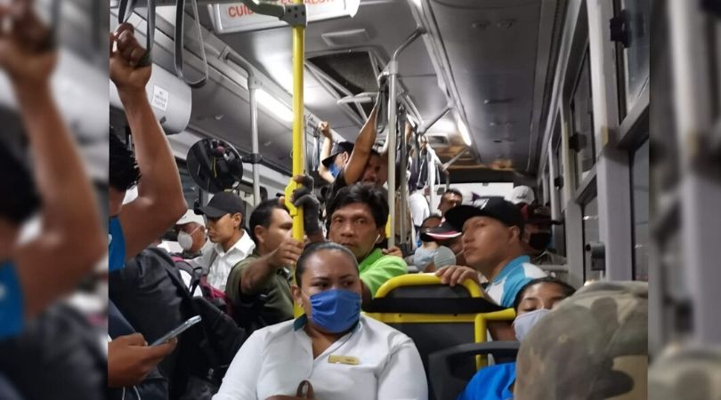 Ver los camiones repletos de usuarios, se ha vuelto tan común como antes del inicio de la pandemia. Cuando se supone que en la nueva normalidad los vehículos del transporte público deberían sólo dar servicio al 50% de su capacidad.