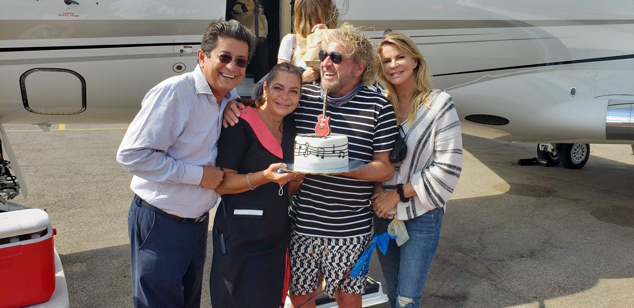 Administración de aeropuerto de C.S.L. recibe a Sammy Hagar con pastel de cumpleaños
