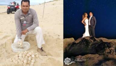 Destacado Tortuga Laúd desovó 94 huevos en playa de Los Cabos. No se ha confirmado que se trate de la misma tortuga laúd que llegó en medio de una boda