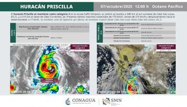 Destacado El Plan Marina se encuentra activo en su fase de Prevención en los estados costeros del litoral Pacífico por el huracán Priscilla