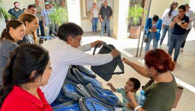 Destacado A través del Gobierno Municipal Fundación Costa Palmas realizó el donativo de 350 mochilas para estudiantes de Miraflores, Santiago y La Ribera.