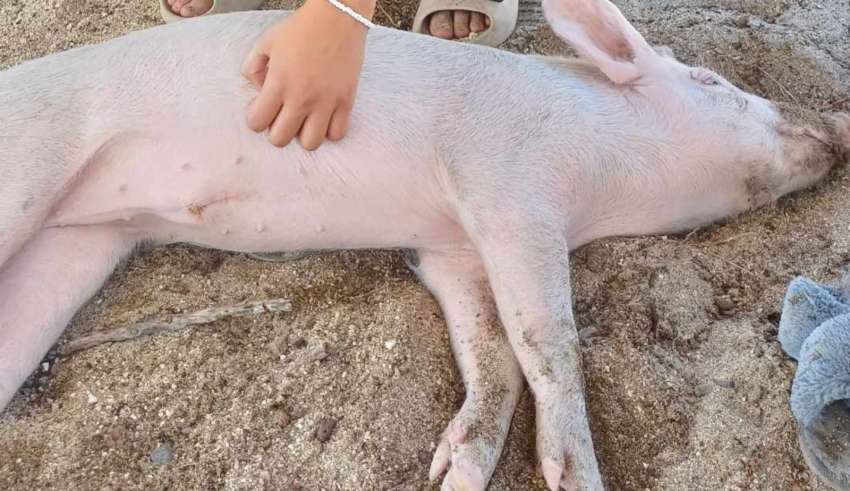 La señora Jollie explicó que Benito es la mascota de su hija, que su pequeña lo alimentó con biberón desde bebé, que es un cerdo domesticado, que no muerde y que se deja tocar por la gente.