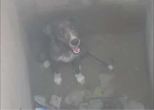 La perrita estuvo varias horas dentro del hueco de casi tres metros de profundidad. Tras el llamado de auxilio fue rescatada y está a salvo, pero en busca de un hogar.