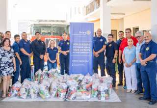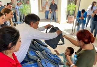 Destacado A través del Gobierno Municipal Fundación Costa Palmas realizó el donativo de 350 mochilas para estudiantes de Miraflores, Santiago y La Ribera.
