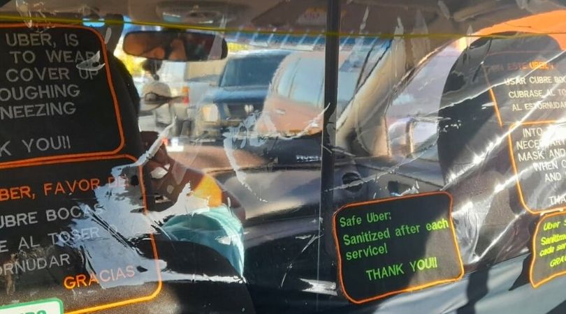 Chofer de Uber pone el ejemplo, con barrera anti-covid