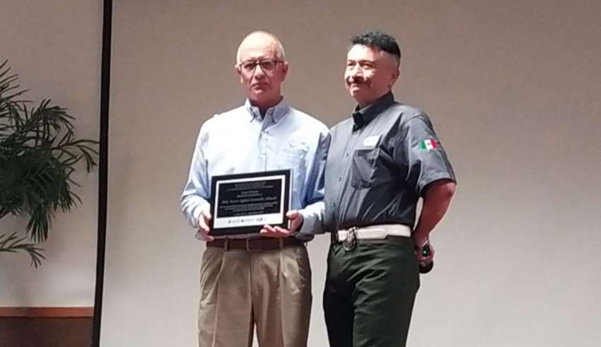 El Dr. Alfredo Ortega director general del CIBNOR fue el encargado de hacer esta entrega a biólogo quien es uno de los primeros dedicados a la conservación en la Península de Baja California.