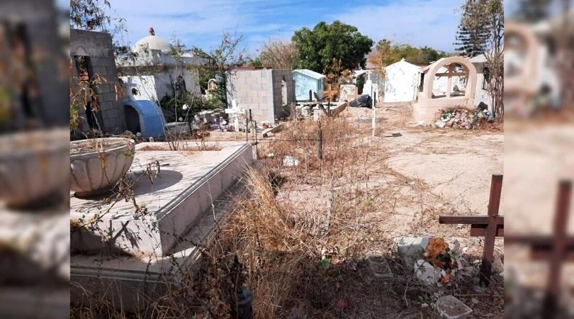 La crítica la realizó un conocido profesor, al postear en su Facebook una serie de imágenes donde se ve el panteón lleno de maleza seca y de hasta más de un metro de altura, así como unas bolsas de basura repletas de flores artificiales viejas en la entrada que no ha sido retirada del lugar.