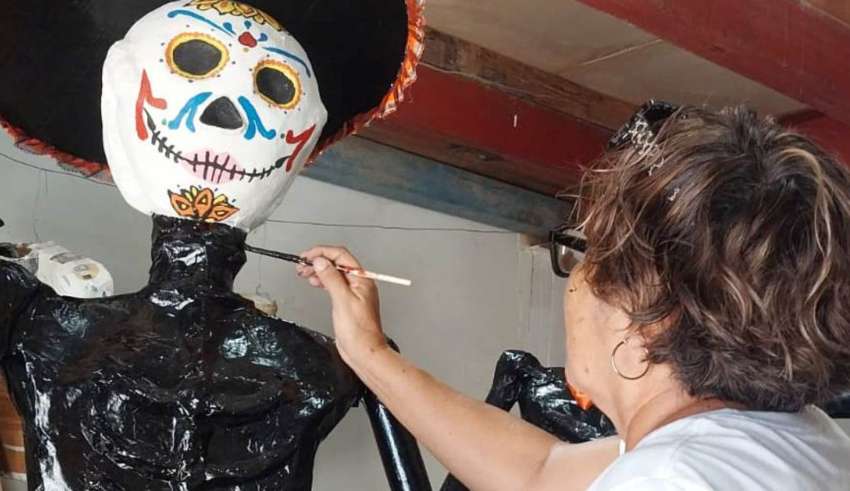 Para el desarrollo de los trabajos, mencionó que se cuenta con el apoyo de un equipo de 5 personas que tienen a cargo la creación de diversos temas y personajes representativos y una vez que concluyan con las labores alusivas al Día de Muertos, se avocarán a las manualidades para los carros alegóricos del Desfile Navideño 2023.