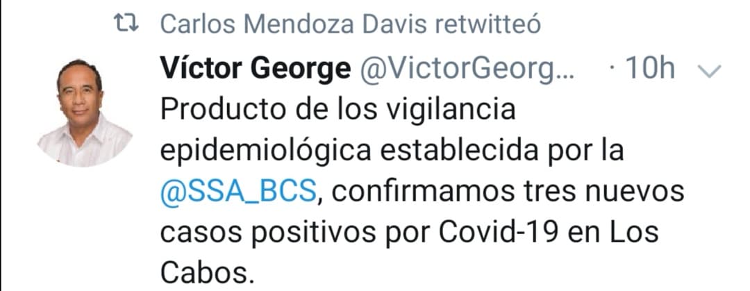 Por el momento no se han dado más detalles al respecto de los nuevos casos positivos en Los Cabos, el Gobernador del Estado, Carlos Mendoza no se ha pronunciado al respecto.
