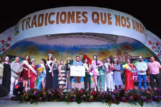 La delegada municipal Karina de la O Uribe, acompañada de servidores públicos, encabezó la entrega de bandas a las participantes. Melanie Navarrete Luján obtuvo los títulos de Miss Simpatía y Miss Elegancia; Jennifer Aguilar Amador, Dama de Honor; Fernanda Nahara Abarca, Princesa; y Damaris Gaynor González, Reina de las Fiestas Tradicionales 2025.