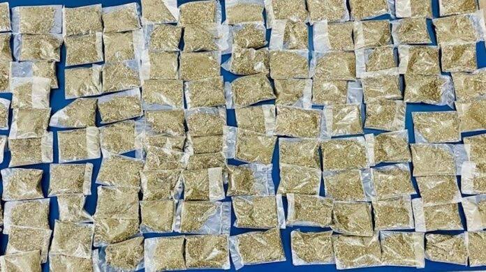 Asimismo, se logró el aseguramiento de 70 envoltorios de plástico conteniendo, en total, 1 kilo 400 gramos de vegetal verde y seco con las características de la marihuana, equivalente a 2 mil 800 dosis.
