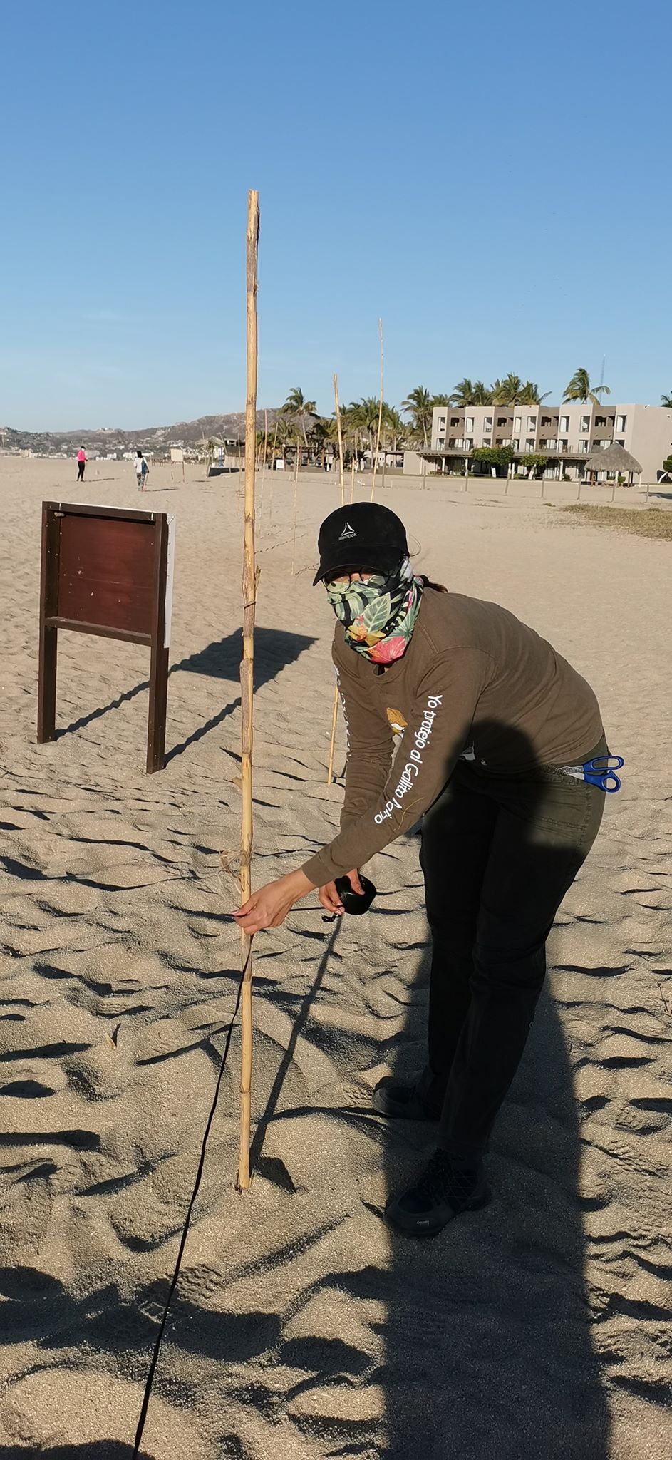 Este año, y a pesar de estar en Fase 3 de la pandemia del Coronavirus, un equipo de personas acudieron sin dejar de lado las medidas preventivas de salud, para que como año con año en el mes de abril instalar el primer cerco de protección que ayudará a esta especie a su anidación.