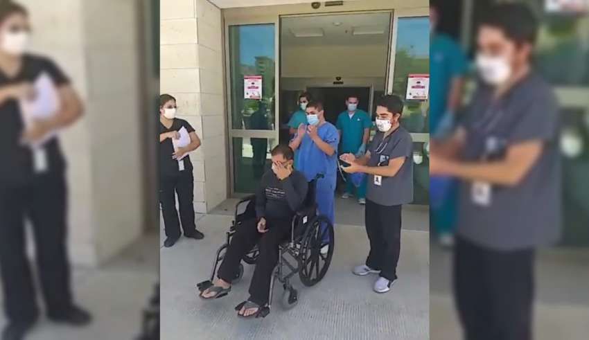 En el video que circula en redes sociales se puede ver como el paciente dado de alta de sexo masculino sale en silla de ruedas y tapabocas junto al personal médico que lo atendió, además de recibir un reconocimiento en papel por su esfuerzo que dio paso a su recuperación.