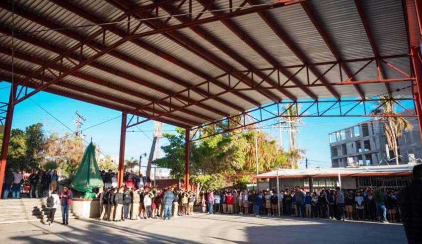 Los Cabos, B.C.S., 18 enero 2024.- Durante la entrega oficial de la techumbre para la explanada de la secundaria Moisés Sáenz Garza, el alcalde de Los Cabos Oscar Leggs Castro, reiteró que continuará trabajando a favor de la educación: “seguiremos apoyando a maestros y estudiantes en lo que se requiera, porque en esta Administración el sentido humano nos guía para seguir avanzando y dar mayores resultados a la ciudadanía cabeña, afortunadamente nos encontramos con Clicerio Mercado a quien le agradecemos su colaboración para hacer posible esta  obra y también para resolver un problema de energía eléctrica en la primaria Frida Kahlo que padecían desde hace tiempo, en este Ayuntamiento de Los Cabos trabajamos con el sector empresarial y las asociaciones civiles para solventar los requerimientos de la población, sobre todo en temas de educativos”, externó.