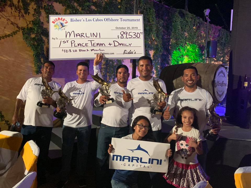 Los Cabos, B.C.S.- Con un marlín negro de 468 libras, el equipo #97 Marlini Capital, integrado por pescadores locales, se llevaron el codiciado primer lugar del Torneo de Pesca Los Cabos Offshore 2019, conocido como el pequeño Bisbee’s. El torneo se realizó los días viernes 18 y sábado 19 de octubre.
