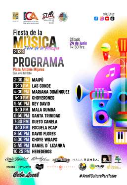 Los Cabos, B.C.S., 20 de junio 2023.- A fin de llevar a cabo la solicitud de las personas que integran a la comunidad de músicos, el Gobierno de Los Cabos a través del Instituto de la Cultura y las Artes (ICA), en colaboración con el Instituto Sudcaliforniano de Cultura te invitan a disfrutar en familia de la Fiesta de la Música 2023 en un solo escenario, pero a su vez, una muestra impresionante de artistas que le imprimen dinamismo al acontecer musical del destino este próximo sábado 24 de junio en la plaza pública Tte. José Antonio Mijares, así lo dio a conocer el director general del instituto Alan Castro Ruíz.