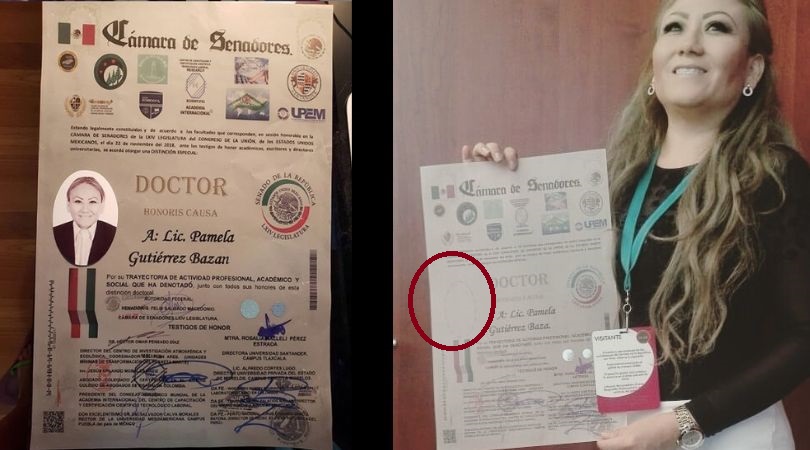Otro dato curioso de este supuesto Doctor Honoris Causa, de la señora Pamela, además de omitir su primer nombre, es que el documento que ella ostenta, nunca lo recibió físicamente, pues la fecha en el documento que ella muestra, efectivamente existió una ceremonia de entrega, y fue dentro del Foro Internacional de Ciencia y Tecnología, donde por ejemplo científicos veracruzanos fueron condecorados por sus aportaciones a través del Plan Ares: primera propuesta latinoamericana para la exploración tripulada de Marte, y en cambio la señora Pamela siendo solo una presentadora en plataformas digitales con una audiencia casi nula, dice haberlo recibido por su trabajo y desempeño como comunicadora a nivel nacional e internacional, lo que genera una incongruencia, además de que el documento de ser real, fue visiblemente alterado, pues estos fueron entregados sin fotografías, y el que ella exhibe porta una fotografía.