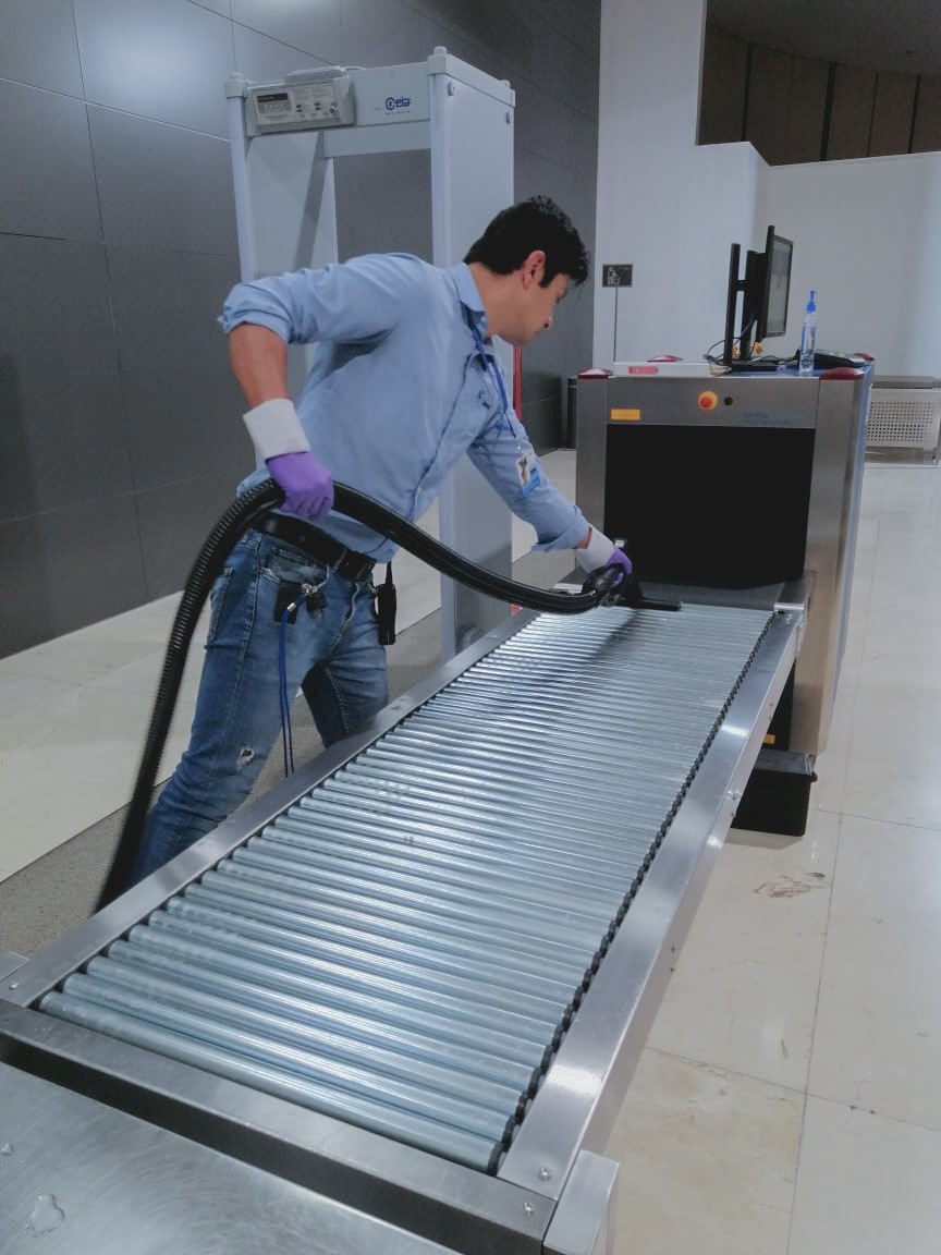 También se han realizado medidas de limpieza y sanitización que consisten en implantar un servicio especializado de sanitización del edificio terminal, áreas y equipamientos; limpieza periódica con desinfectante de superficies de contacto directo con el pasajero; e implementación de máquinas de vapor de última tecnología para limpieza y desinfección profunda de charolas, sanitarios, bancas, mesas y otro mobiliario.