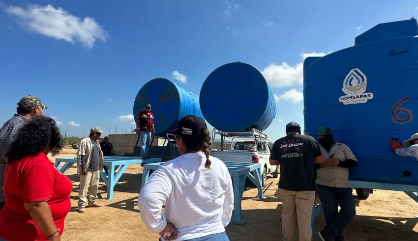 Los Cabos, B.C.S., viernes 29 de septiembre 2023.- A fin de cumplir la encomienda del presidente municipal Oscar Leggs Castro de llevar el vital líquido a todos los sectores sin distinción, el equipo del Organismo Operador del Sistema de Agua Potable, Alcantarillado y Saneamiento de Los Cabos dirigido por el ingeniero Ismael Rodríguez Piña realizó la instalación de los 8 tinacos comunitarios de 10 mil litros que se entregaron en la colonia Mezquites de Cabo San Lucas, mismos que serán abastecidos mediante pipas agua potable.