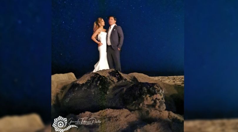 Jacobo Batarse y Ma. Mercedes Simón, fueron los afortunados recién casados que tuvieron el honor de contar con la presencia de una majestuosa tortuga Laúd en su boda.