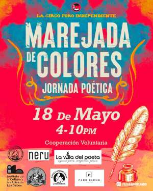 San José del Cabo, B.C.S.- El próximo domingo 18 de mayo de 2025, el vibrante escenario de La Circo, Foro Independiente, se convertirá en el punto de encuentro para la palabra viva con la celebración de “Marejada de Colores”, Jornada de Poesía Independiente, un evento dedicado a la difusión de la literatura contemporánea, la promoción de artistas emergentes y la colaboración entre proyectos culturales de la región.