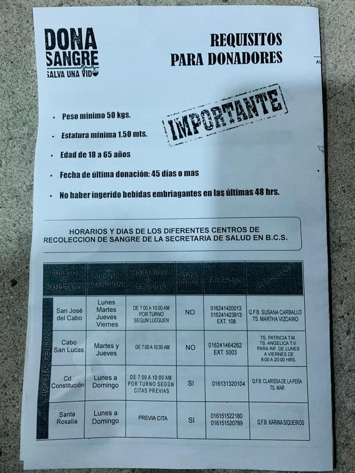 Deberán presentarse y dar el nombre de Paola Janeth Avilés Espinoza, guardar foto del comprobante que les darán posterior a la donación y hacerlo llegar a Hada Avilés Espinoza al número celular:624.229.23.39.