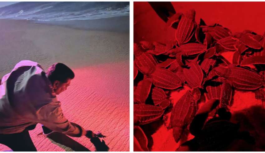 Como parte del protocolo, se empleó luz roja durante la liberación, ya que esta tiene una longitud de onda larga que las tortugas marinas apenas perciben, evitando desorientarlas. A diferencia de la luz blanca o azul, la luz roja no interfiere con su instinto natural de dirigirse hacia el mar, lo que incrementa sus posibilidades de supervivencia.