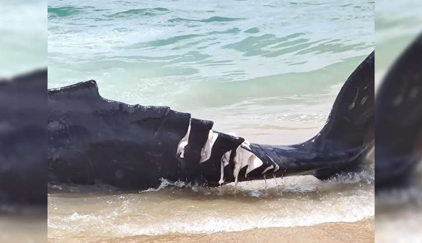 Localizan ballenato sin vida varado en playa CSL. Presenta cortes profundos de una propela.