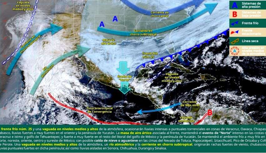 Al respecto, el director municipal de Protección Civil, Francisco Cota Márquez, dio a conocer que una zona de baja presión ubicada al oeste de la península de Baja California Sur, la cual generó un ciclón extratropical y comenzó a desplazarse hacia el norte, arrastrando humedad hacia la entidad, este sistema, en combinación con la influencia de un río atmosférico, favorece el ingreso de flujo de humedad al sur y a la parte media de la península, manteniéndose el pronóstico de lluvias para el Estado, incluido el municipio de Los Cabos, aunque su intensidad y distribución dependerán del comportamiento que registre dicho río atmosférico en las próximas 48 horas.