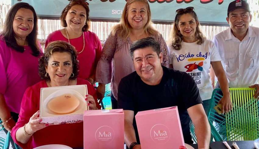 Los Cabos, B.C.S., 28 abril 2023.- La mañana de este jueves, durante la rueda de prensa que se llevó a cabo en el restaurante Macarela en San José del Cabo, la coordinadora del Programa de Atención a Pacientes con Cáncer del DIF Los Cabos, María del Carmen Zerón Castañón, -en representación de la presidenta honoraria Flora Aguilar de Leggs-, recibió un donativo de 5 prótesis para mujeres con cáncer de mama, por parte del organizador del evento Sashimi Fest Jesús Montaño Avilés y del Lic. Alejandro Rojas.