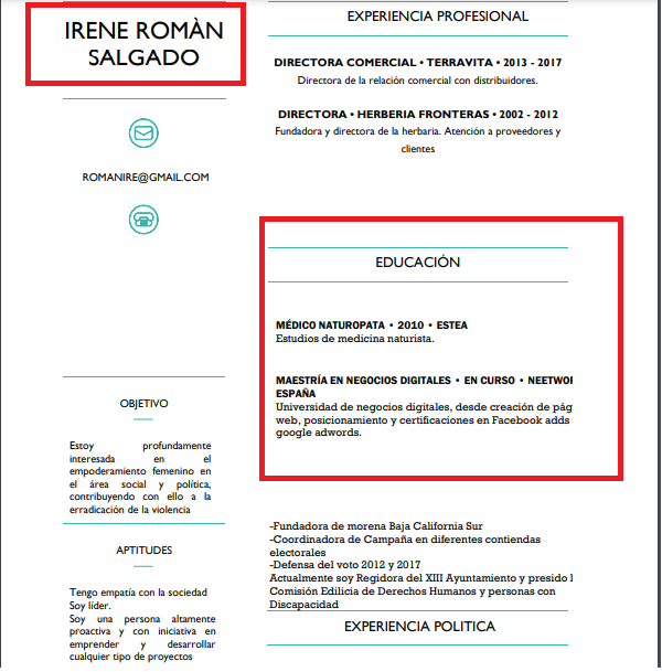 Los Cabos, Baja California Sur, a 11 noviembre del 2020.Se suma regidora por Morena Irene Román Salgado a la lista negra de funcionarios que mienten en sus estudios académicos, al no comprobar con documentación los estudios que dice tener como Médico Naturópata y Maestría en Negocios Digitales.