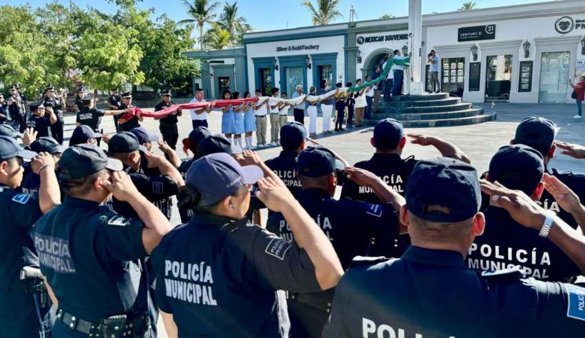 “El día de hoy lunes 02 de septiembre se llevó a cabo la ceremonia cívica de los honores a la bandera en la plaza pública Antonio Mijares en San José del Cabo, para dar inicio a las festividades de este mes que comienza con el encendido del fuego del pebetero; actividad que en esta ocasión hicimos en coordinación con el Instituto del Deporte (INDEM) y con la Dirección General de Seguridad Pública, Policía Preventiva y Tránsito Municipal”, resaltó el director municipal de Educación Jorge Servín Meza.