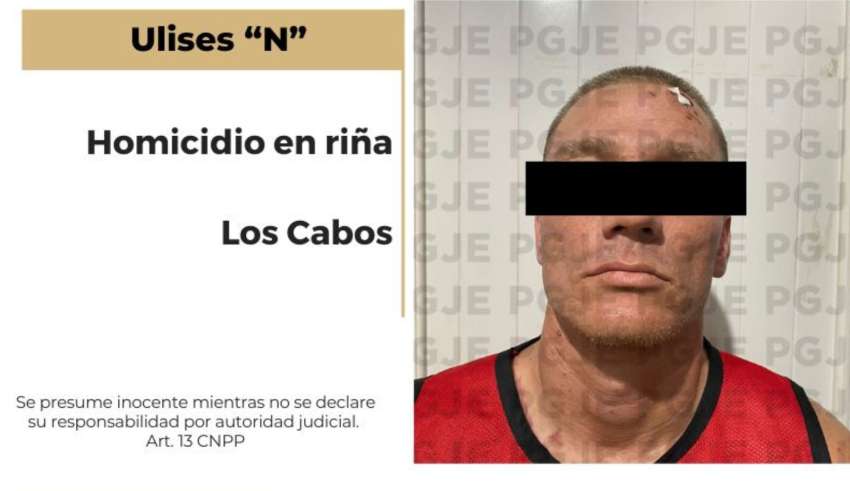 Los Cabos, BCS a 09 noviembre del 2023.- Ulises “N”, de apodo “El güero”, fue vinculado a proceso penal por homicidio en riña y se encuentra en prisión preventiva; el hecho que se le imputa ocurrió el domingo 29 de octubre del año en curso, en un domicilio que se ubica en la Av. Constituyentes, colonia Magisterial, en Cabo San Lucas, en donde presumiblemente golpeó en cabeza y rostro a la víctima causándole lesiones que le provocaron la muerte.