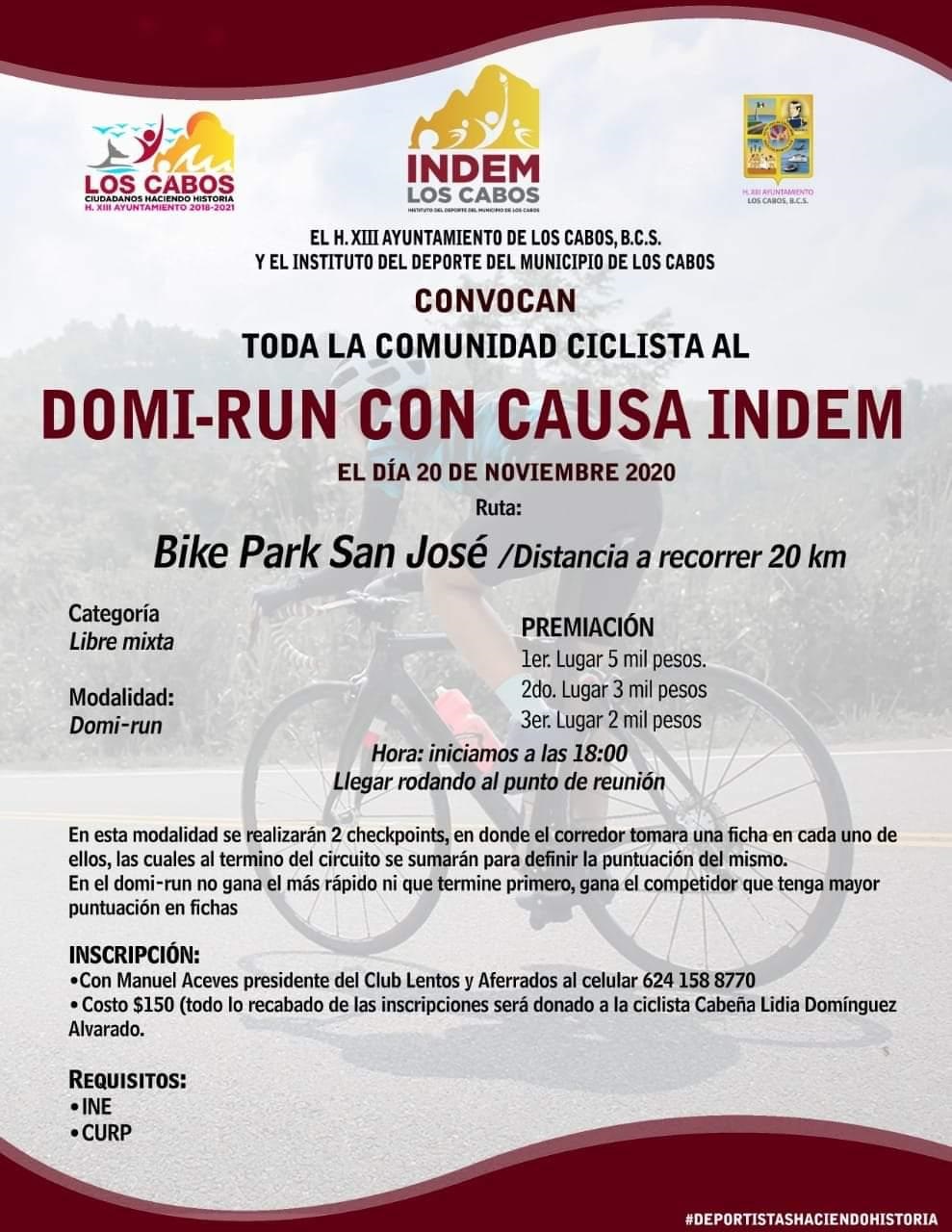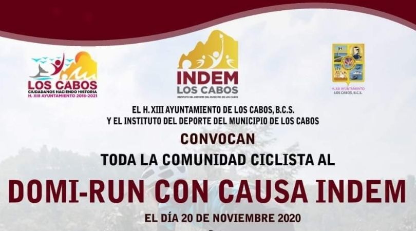Los Cabos, Baja California Sur, a 06 de octubre del 2020.- Supuestamente con todos los permisos en regla, la administración municipal de Armida Castro a través del Instituto Municipal del Deporte está convocando para el próximo 20 de noviembre a toda la comunidad ciclista a una carrera en la modalidad de Domi-Run, donde si bien los participantes no saldrán juntos, esto no implica que no romperán la sana distancia previo a su salida.