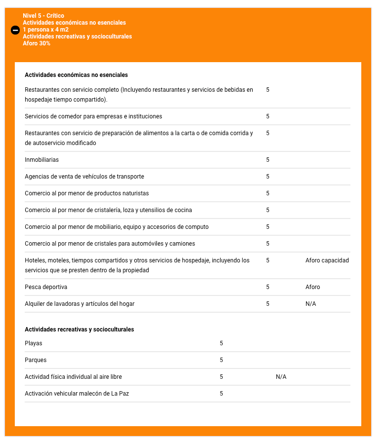 Esto después de pasar de nivel 6 al 5 en el Sistema de Alertas Sanitarias autorizado por el Comité Estatal de Seguridad en Salud.