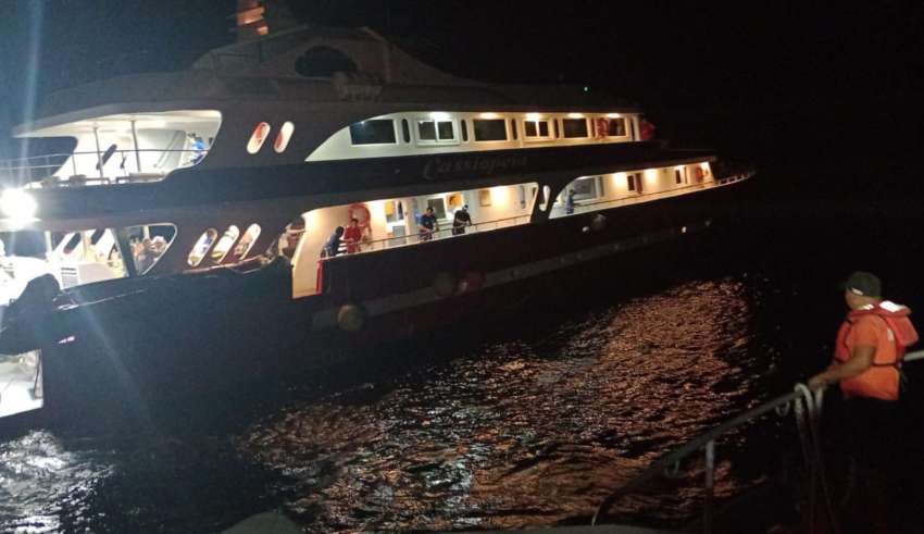 Esta acción se realizó tras una llamada de auxilio a través del canal 16 VHF, por lo que se ordenó el zarpe de dos embarcaciones tipo Defender, dirigiéndose al lugar donde se encontraban las 29 personas de nacionalidad americana y española, a bordo del Yate turístico de nombre “CASSIOPEIA”, mismo que se encontraba sin propulsión.