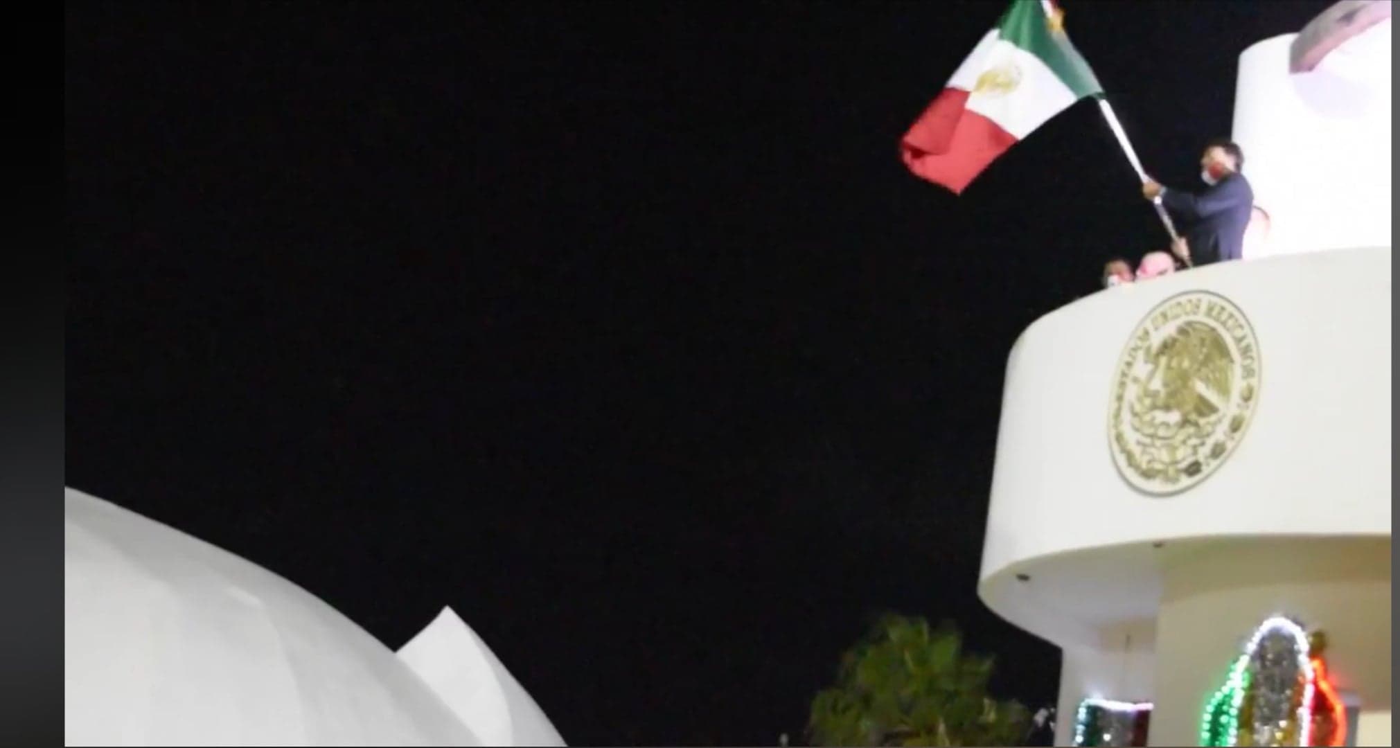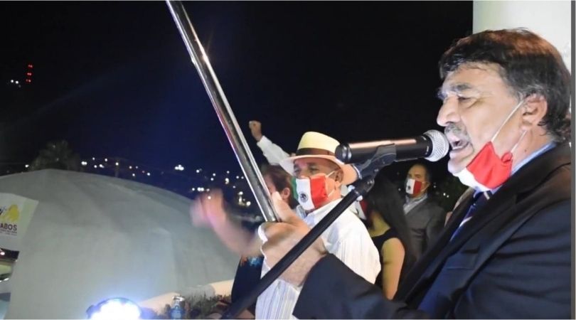 El Grito de Viva México, se dio en medio de una ceremonia austera y sin campana desde el balcón delegacional, que aun con los adornos más deprimentes que pudo colocar Servicios Públicos, a diferencia del balcón del Palacio Municipal de San José del Cabo, se realizó el tradicional Grito de manera virtual por Leggs Castro.
