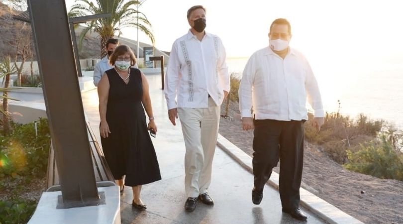 Los Cabos, Baja California Sur a 02 de diciembre del 2020.- Luego de que Estados Unidos, recomendó “evitar todos los viajes a México”, ante el “muy alto nivel” de casos de COVID-19. Baja California Sur, recibió la visita del embajador de Estados Unidos en México, Christopher Landau y al cónsul de Estados Unidos en Tijuana, Sue Saarnio, atendidos principalmente por el Gobernador del Estado, Carlos Mendoza Davis, quien les reiteró el compromiso de su administración para fortalecer la colaboración bilateral en temas de interés común como seguridad, turismo, y la situación de ciudadanos de Estados Unidos que radican en el Estado sudcaliforniano.