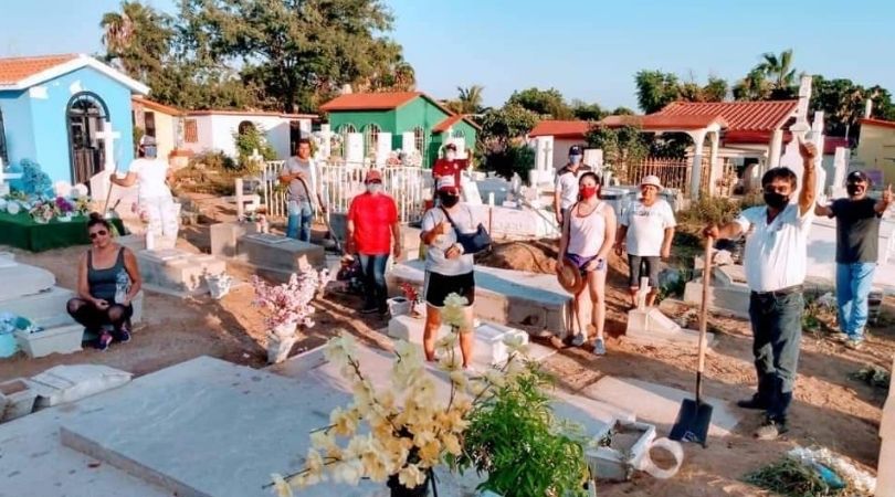 Poniendo el ejemplo y siendo las jornadas de limpieza lo que lo ha caracterizado como delegado de Cabo San Lucas, pues prácticamente lo tienen sin presupuesto público, la mañana del martes acudió con un grupo de voluntarios a limpiar el panteón Cabo Cielo.