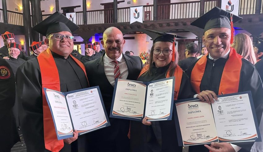 Los Cabos, B.C.S., 14 de mayo de 2024.- Tres elementos del H. Cuerpo de Bomberos de Cabo San Lucas, obtuvieron el grado de Maestría en Protección Civil y Gestión de Emergencias, por la Universidad Internacional del Conocimiento y la Investigación (UNICI), con sede en el Estado de Chiapas.